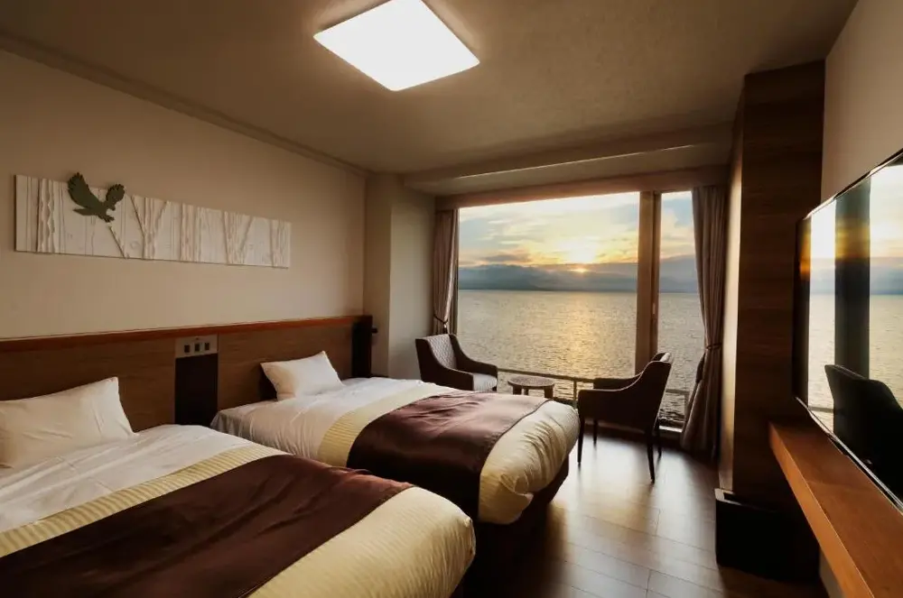 Il Lake Saroma Tsuruga Resort, immerso nella natura incontaminata dell’Hokkaidō, offre un parcheggio privato gratuito e una struttura pensata anche per famiglie, con camere adatte ai gruppi più numerosi. Gli ospiti possono usufruire di un ristorante interno che serve piatti locali, oltre alla possibilità di accedere a una sbarra attrezzata per momenti di relax o preparazione pasti veloci. Un servizio pratico è il trasferimento gratuito dall’aeroporto, utile per raggiungere la struttura senza preoccupazioni aggiuntive. La posizione strategica consente di esplorare dintorni ricchi di attrattive: Trambusto si trova a soli 35 minuti di auto (38 chilometri), ideale per chi desidera visitare questo villaggio caratteristico noto per le sue case tradizionali in legno e l’atmosfera autenticamente giapponese. Ancora più vicino, a sole due minime di guida (2 chilometri), c’è Pazienti con persone, zona probabilmente dedicata alle attività all’aria aperta o al contatto diretto col paesaggio lacustre tipico della regione. Per gli amanti delle escursioni culturali ed enogastronomiche, Arujis dista altrettanto 35 minuti (38 km) in automobile, offrendo opportunità come visite a fattorie e degustazioni dei prodotti tipici hokkidesi. Infine, il celebre Resort del Lago Abashiri, raggiungibile anch’esso in 35 minuti (38 km), rappresenta una tappa imperdibile grazie ai suoi panorami mozzafiato sul lago gelido durante i mesi invernali e agli itinerari naturalistici disponibili tutto l’anno.